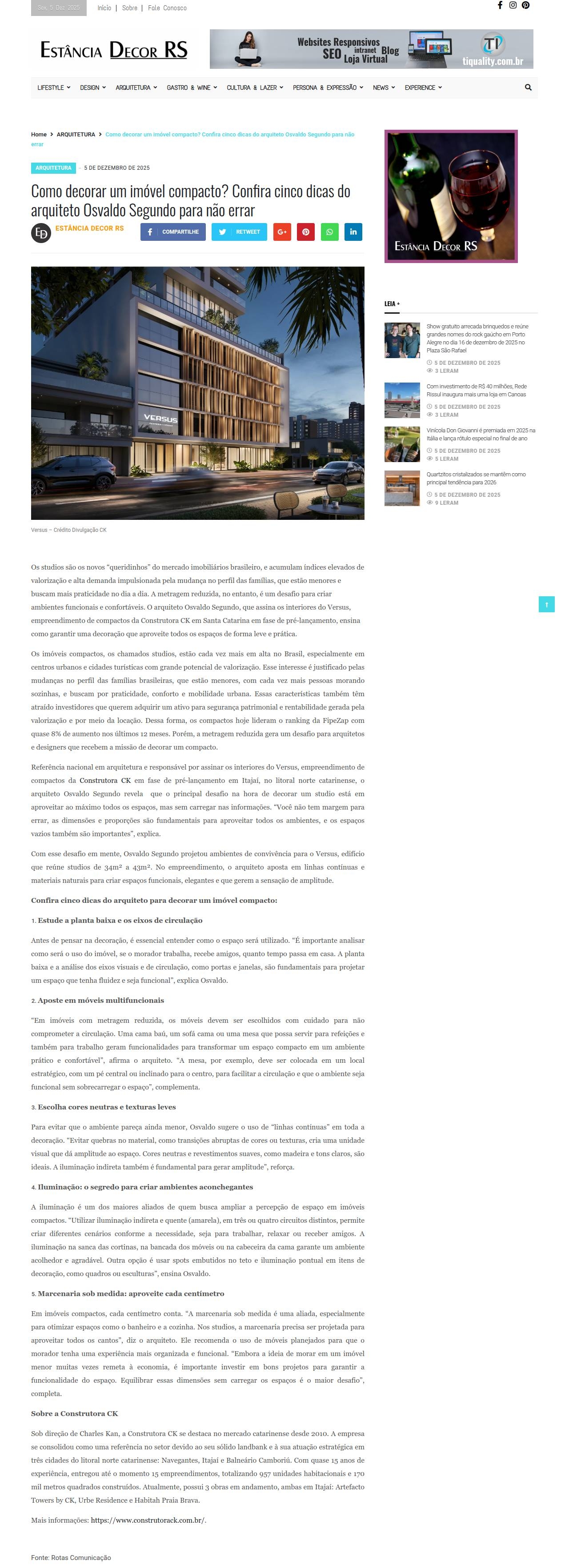 Como decorar um imóvel compacto? Confira cinco dicas do arquiteto Osvaldo Segundo para não errar - Estância Decor RS