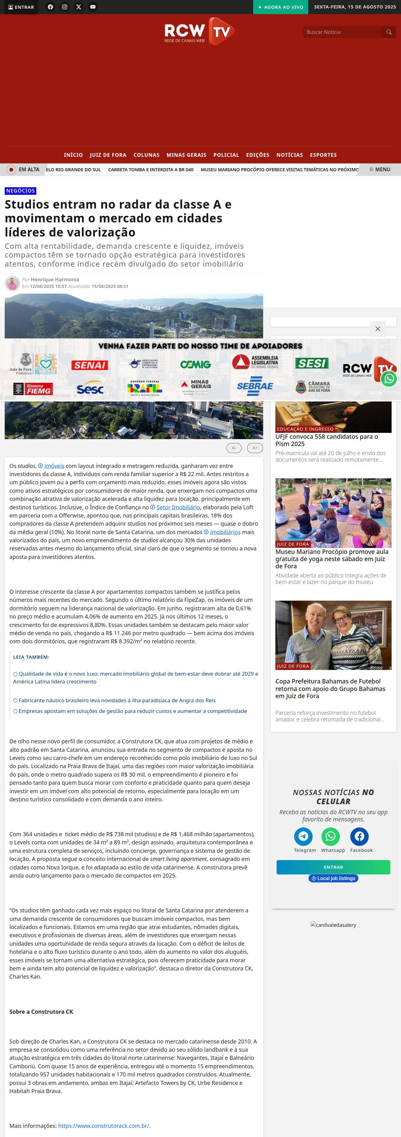 Studios entram no radar da classe A e movimentam o mercado em cidades líderes de valorização - RCWTV